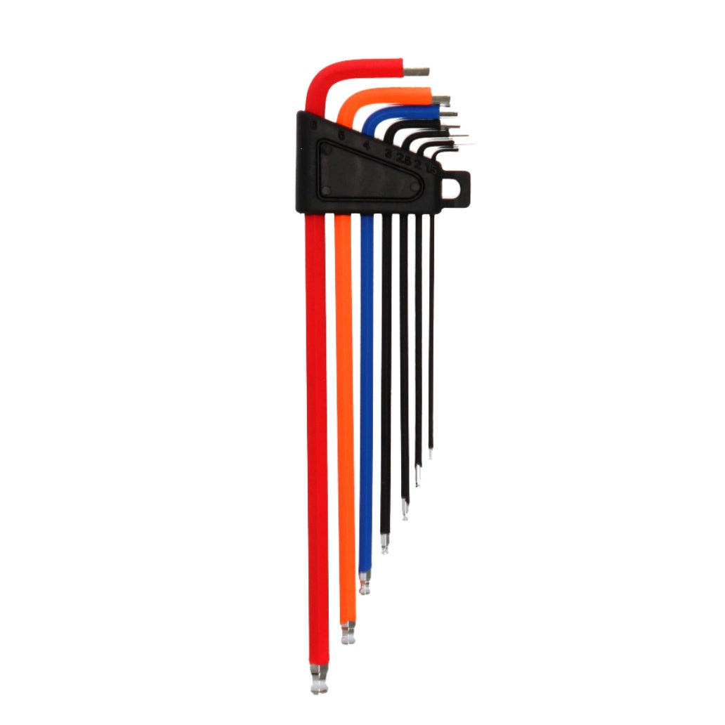 Ideal para todo ciclista o taller, este set incluye 7 llaves Allen con extremo esférico, permitiendo acceder a tornillos en diferentes ángulos con facilidad.✔ Medidas incluidas: 1.5 / 2 / 2.5 / 3 / 4 / 5 / 6 mm