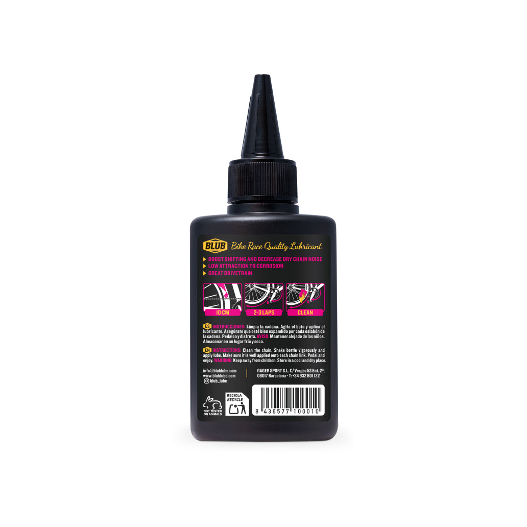 • El Lubricante Blub Dry es un lubricante para bicicletas a base de aceite, especialmente formulado para ofrecer un rendimiento óptimo en condiciones secas y en recorridos de larga distancia. Su fórmula 100 % biodegradable garantiza un excelente cuidado de la transmisión sin comprometer el medio ambiente.