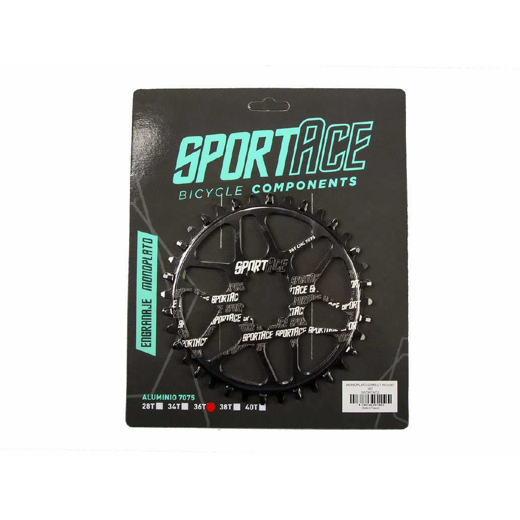 • El monoplato Direct Mount Sportace está diseñado específicamente para transmisiones SRAM, ofreciendo máxima rigidez, precisión y durabilidad. Fabricado en aleación de aluminio 7075 mediante mecanizado CNC, garantiza un rendimiento confiable y una excelente resistencia al desgaste en todo tipo de uso.